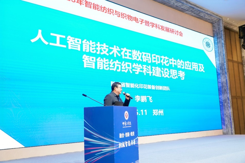 西安工程大學(xué)李鵬飛教授以《人工智能技術(shù)在數(shù)碼印花中的應(yīng)用及智能紡織學(xué)科建設(shè)思考》為題作主旨報(bào)告,指出人工智能技術(shù)已成為推動(dòng)印染工業(yè)轉(zhuǎn)型升級(jí)的核心驅(qū)動(dòng)力,系統(tǒng)探討生成式 AI 與數(shù)碼印花圖案設(shè)計(jì)的深度融合路徑,重點(diǎn)分析 AI 在印染設(shè)備的關(guān)鍵應(yīng)用前景。然后,從智能紡織學(xué)科建設(shè)視角出發(fā),指出需以產(chǎn)業(yè)需求為導(dǎo)向,探索面向未來(lái)的智能紡織的跨學(xué)科人才培養(yǎng)方法。