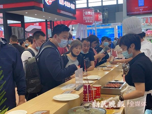 圖說:展會現(xiàn)場觀眾試吃美食 錢文婷 攝(下同)